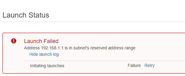 생성을 시도해 보면 Address 192.168.1.1 is in subnet's reserved address range